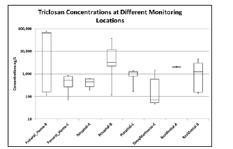 Figure 1:Triclosan Concentration at Different Sample Locations.