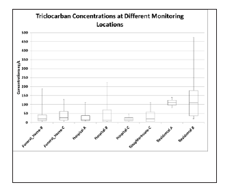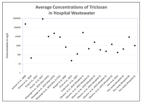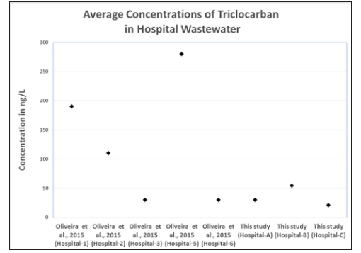 Figure 5:Comparison of Average Triclosan Concentrations in Hospital Wastewaters.