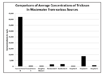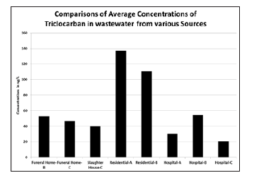 Figure 3:Comparison of Average Triclosan Concentrations in wastewater from different sources.