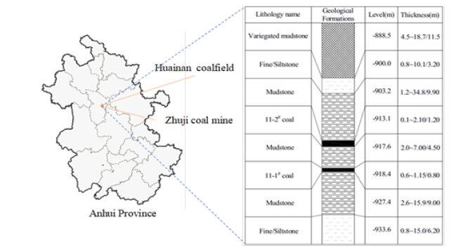 Figure 1:Borehole log for working face 1111(1) at Zhujidong coal mine, Huainan Mining (group) co., ltd., Anhui Province, China.