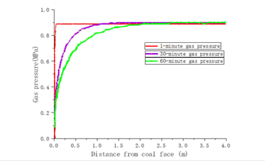 Figure 10:Relationship between gas pressure and distance from the coal wall.