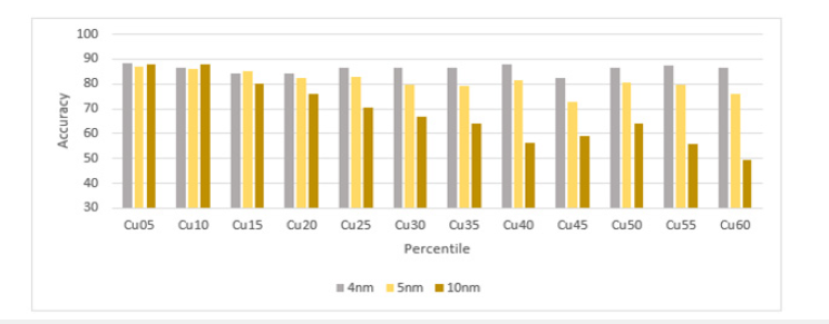Figure 12:The prediction accuracy of copper grade of 4nm, 5nm and 10nm spectrum resolution data.