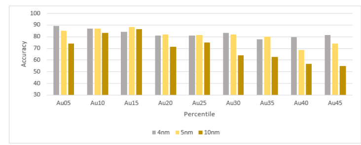 Figure 13:The prediction accuracy of gold grade of 4nm, 5nm and 10nm spectrum resolution data.