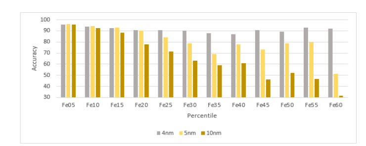 Figure 14:The prediction accuracy of iron grade of 4nm, 5nm and 10nm spectrum resolution data.