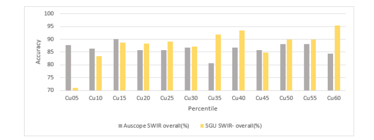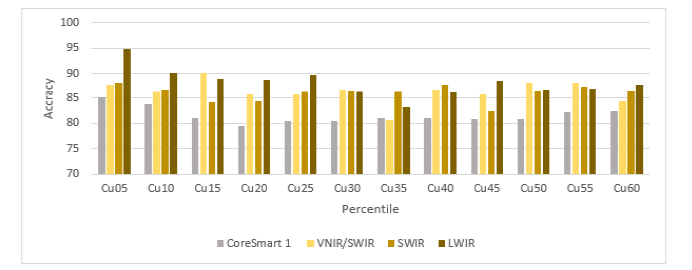 Figure 3:The prediction accuracy (%) of copper for CoreSmart1 compared to Coresmart2 VNIR/SWIR, SWIR and LWIR models.