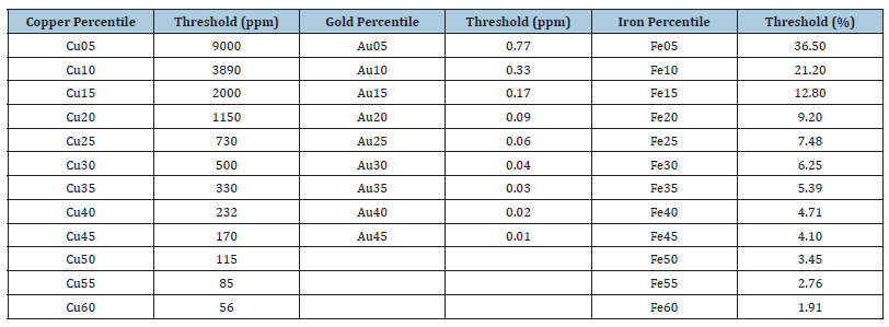Table 3:Table of the metal grade percentiles and the thresholds used in this article.