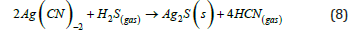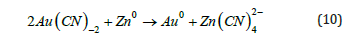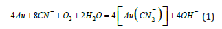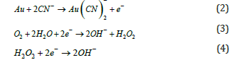 In Mexico, Cyanidation is the primary technique for gold and silver ore extraction [1]. Elsner first explored gold cyanidation chemistry in 1846. In alkaline solutions containing dissolved oxygen and cyanide ions, both gold and silver undergo electrochemical reactions that lead to their dissolution as stable cyanide complexes [2] is represented by equation (1).