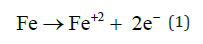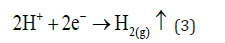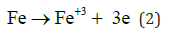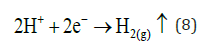 In this electrode side, more hydrogen evolution takes place, but (H+) now comes from weak acids and iron hydrolysis. This reaction mechanism is show in Figure 2-4. Then precipitation of Fe (III) hydroxide (7) continues, and Fe (II) hydroxide precipitation also occurs presenting a dark green floc.