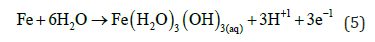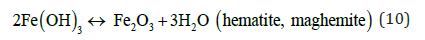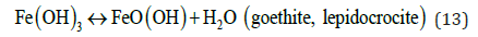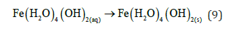 The pH for minimum solubility of Fe (OH)n is in the range of 7-8. EC floc is formed due to the polymerization of iron oxyhydroxides, Table 1. Formation of rust (dehydrated hydroxides) occurs as shown in the following: