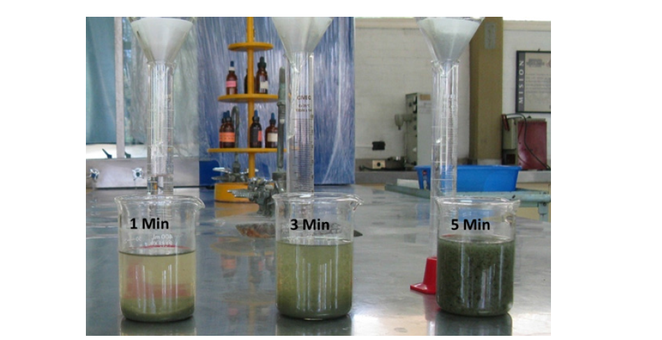 Figure 6:Pictures show the effect of the time of the waste-water treatment for formation of green roust (5 minutes), this is the set point for correct operation of the system.