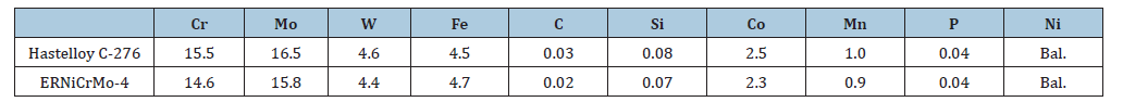 Table 1:Chemical composition (wt %) of Hastelloy C-276 and welding wire.