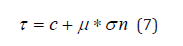 This equation was calibrated for pillar geometries, Kersten [2], and additional calibrations are required for universal application. The current study is partly prediction as well as calibration. The b value appears to be a function of the coefficient of friction used in the Mohr envelope failure criterion defined by: