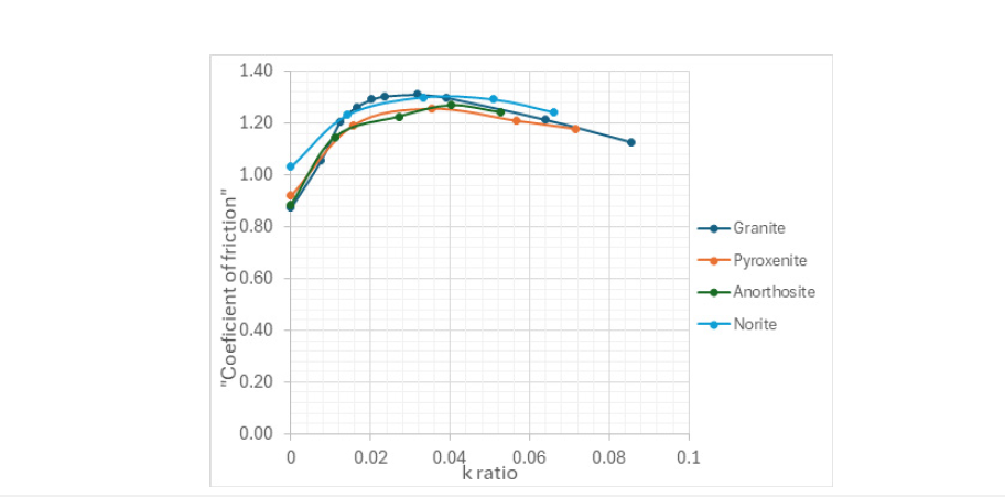 Figure 4:“Coefficient friction” for igneous rocks at various k-ratios.
