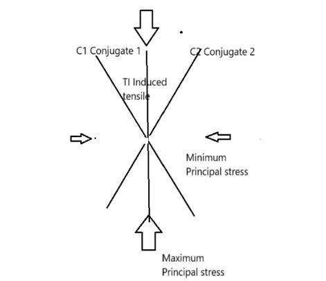 a.Failure for k-ratio, minimum/maximum principal stress, close to zero results in induced tensile stress fractures parallel to the maximum principal stress.