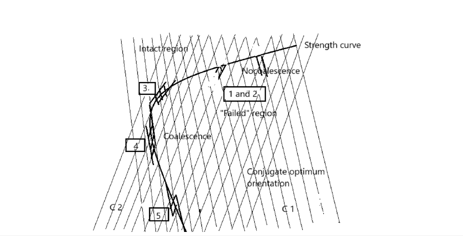 Zao-Wei et al. [5] summarised the findings of at least 300 papers on crack coalescence concluding with a listing 8 different options that could be used but none of them are of immediate practical application. In the current discussion it is postulated that micro-fractures coalesce if and when the critical composite, wingcrack micro-crack orientation coincides with the orientation of the strength/stress contour=1.