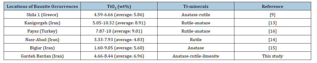 Table 1:Comparison of the Gerdeh Bardan karst bauxite deposit with other known titanium-rich karst bauxite deposits worldwide in terms of titanium mineralogy and TiO2 concentration.