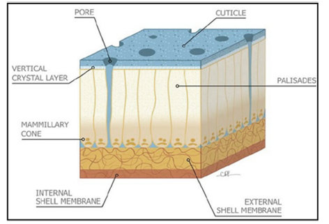 Figure 1:A schematic diagram of the cross-section hen’s eggshell. This figure was originally.