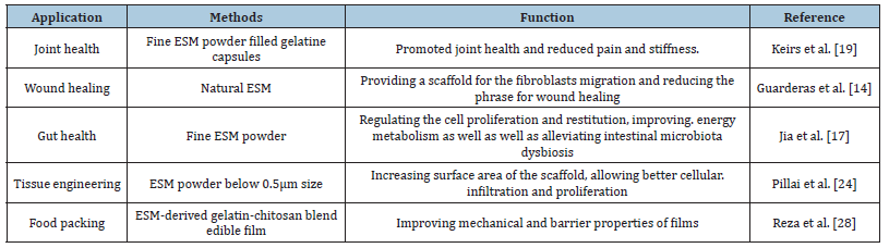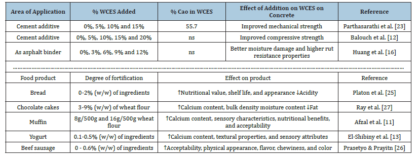 Table 1:Applications for use of eggshell waste from Shi et al. [5].
