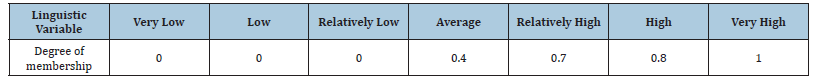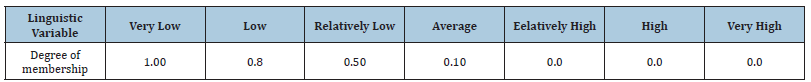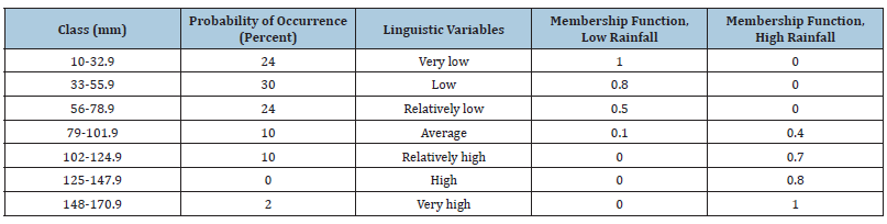 Table 4:Degree of membership of fuzzy sets corresponding to different linguistic variables or verbal expressions to calculate the probability of low rains.
