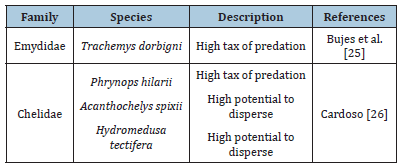 Table 1:Relation of Freshwater turtles with Limnoperna fortunei in South America.