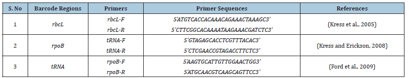 Table 2:Detailed description of selected DNA barcode regions it’s with forward and reverse primers along with recommended authorities.