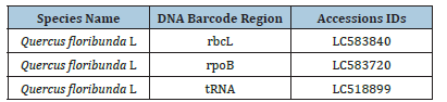 Table 3:A detailed description of DNA barcodes sequences submitted into NCBI (DDJB) database along with obtained Accession IDS.