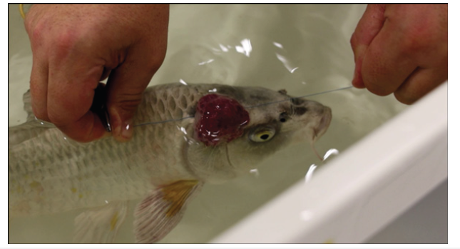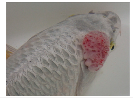 Figure 1:Dorsolateral tumour on the head of a koi carp.
