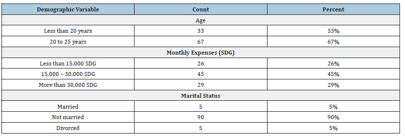 Table 1:Demographic characteristics of female students in M.O Saror, Almatama (n=100).