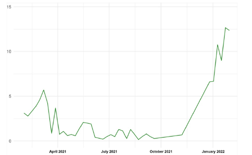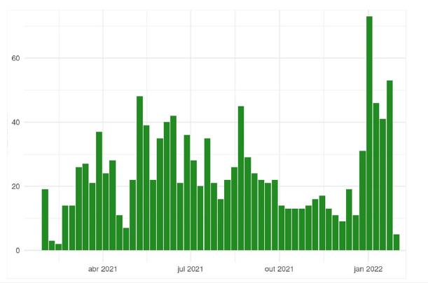 Figure 3:Distribution of positivity by week (%).