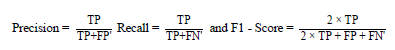 where FP, FN, TP, TN are given as false positives, false negatives, true positives, and true negatives, respectively. The classification results are presented in Table 2. The three autoencoders all performed well on the unseen brain MRI test images and managed to achieve an overall accuracy of 0.86. The F1 score and precision were also more than 0.7 for all three autoencoders.