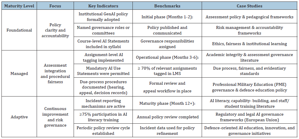 Table 3:Mapping maturity levels to indicators and implementation benchmarks.
