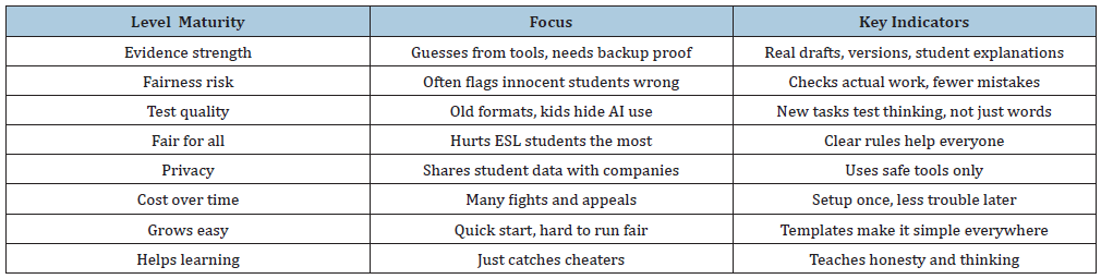 Moreover, to achieve fair and defensible implementation of GenAi and LLM detection on our systems, we need: strict and explicit usage levels per assignment, mandatory disclosures where and how GenAI use is permitted, a clearer rule governing detection tools strategy, robust data and privacy rules supported by preapproved tool lists, and an update to the existing incident reporting and review mechanisms of traditional e-systems [4,5,10].
