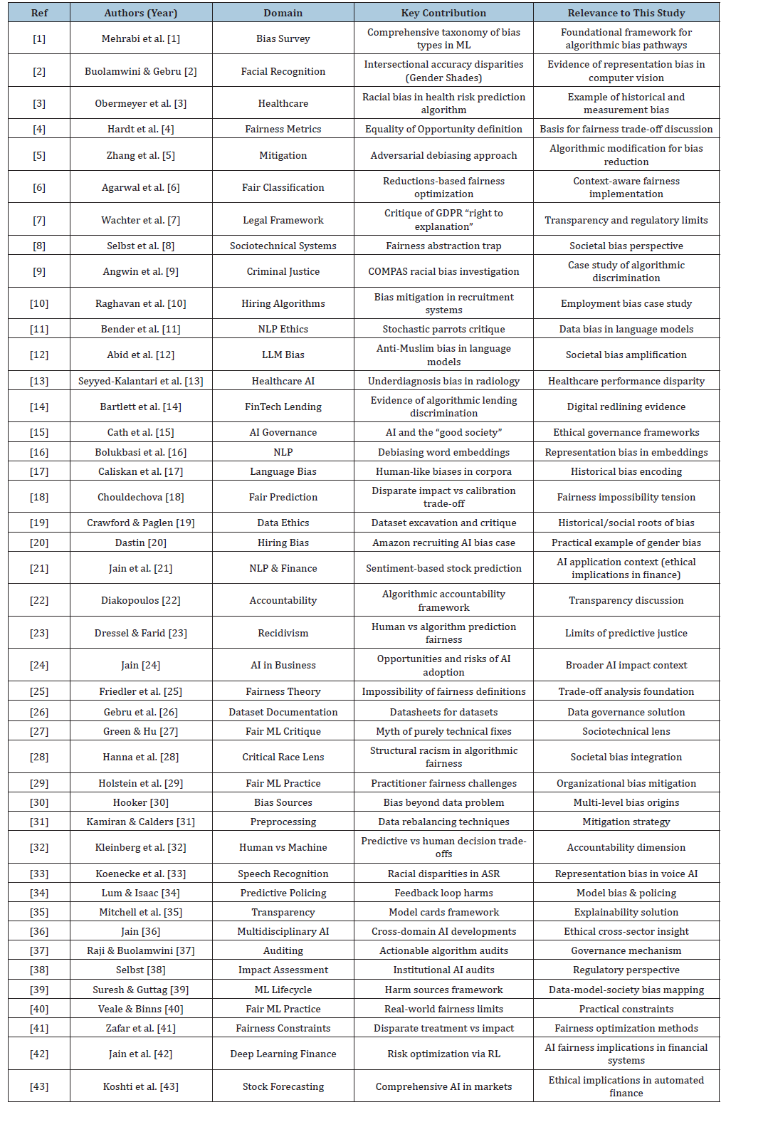 The collective evidence indicates that algorithmic bias is not an accidental flaw but an emergent property of sociotechnical systems operating within historically unequal societies. Technical mitigation strategies provide measurable improvements but cannot independently resolve structural inequities. Theoretical trade-offs in fairness definitions highlight the normative dimensions of AI governance, while regulatory mechanisms remain in early stages of maturity.