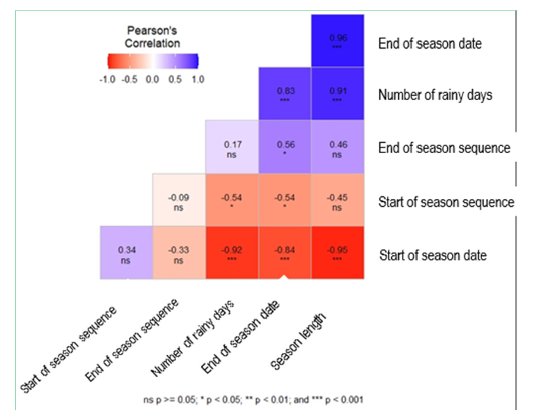 Figure 8:Correlogram between the agroclimatic parameters of the season in the Niger river regions.