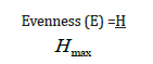 Evenness/Equitability Index (E)=These measures how evenly distributed species are in an area and is expressed as: