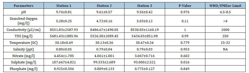 Table 1:Mean concentration of physico-chemical parameters across stations.