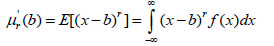 The moment of the order r (r=1, 2, 3, ...) around the point b is defined as: