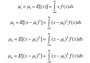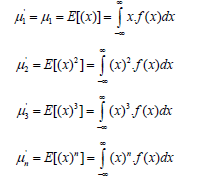 When b=0, then the moment is simply called the rth the random variable x around the starting point 0 and is denoted by μ'r.When b=E(x), then the moment is called the rth central moment of the random variable x and is denoted by μ.r The central moments are defined as: moment of