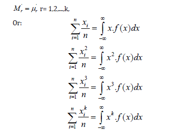 If there are existing sufficient number of moments r'μ as there are parameters to be evaluated, then a system of equations can be derived from the equation: