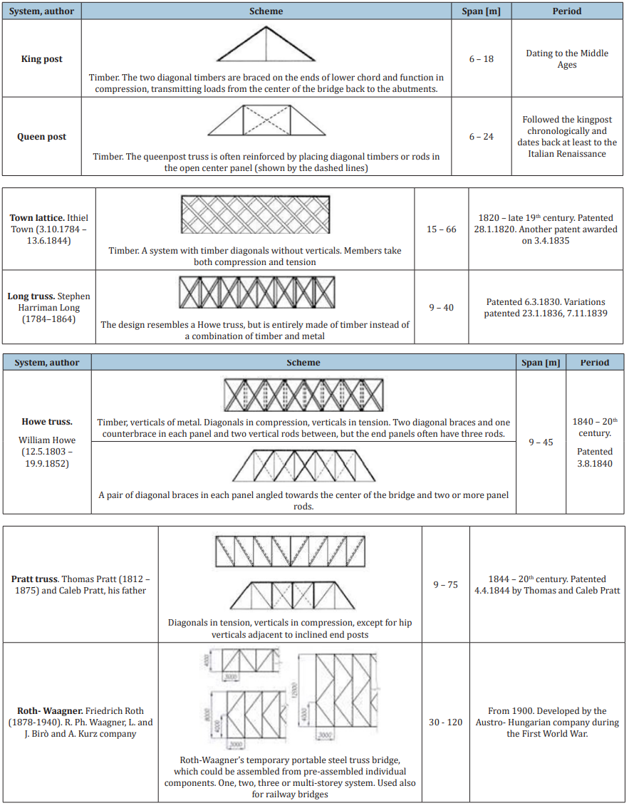 Table 1:Structural materials and structural bridge systems in 18th and 19th centuries [10].