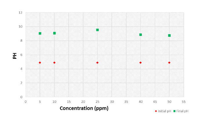Figure 4:Effect of pH of the chromium after phytoremediation by Azolla pinnata treatment on the 14th day.