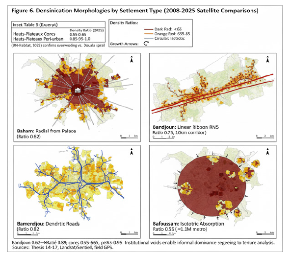 This multi-site comparative case study examines Bafoussam (West hybrid, ~500,000), Douala (sprawl, ~3.5M, 60% informal), and Yaoundé (policy, ~4M), selected for contextual diversity and 47-60% informality [2].