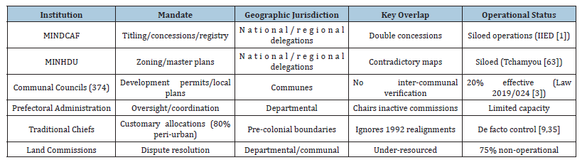 Table 1:Institutional mandates and coordination gaps in Cameroon land governance.