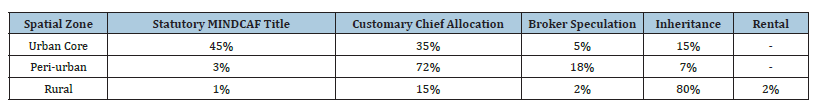 Socio-spatial exclusion: Informal tenure mechanisms reinforce inequalities. Women access customary land 2.3×less than men; youth comprise 12% of landholders despite 60% population; migrants relegated to precarious broker markets (Table 5). Fragmentation thus perpetuates marginalization through gendered, generational, and autochthonous customary norms operating in regulatory voids. Theoretical contribution: These patterns validate resilience frameworks emphasizing system-level vulnerabilities. Informal adaptations (customary allocations, broker transactions) provide short-term housing access but create long-term risks tenure insecurity, disaster exposure, infrastructure deficits that fragmentation exacerbates through coordination failures.