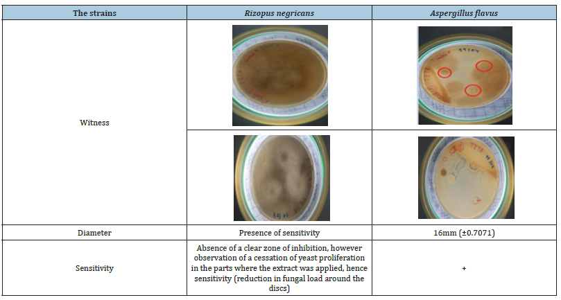 Antifungal activity: Considering the problem of spoilage and mold damage to fruits and vegetables, many studies have been conducted on the antifungal effects of natural plant-derived products. The results are expressed in Table 4. The methanolic extract of Ulva rigida has no significant or even non-existent antifungal activity, this will allow it to be used in the preparation and formulation of cheeses based on mushrooms (Table 5).