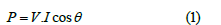From equation 1, P is power (W), V is voltage (Volt), I is electrical current (A) and cos θ is the power factor.