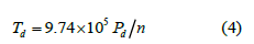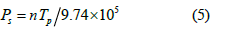where Td is torque design (kg.mm) and Pd is power design (shaft power or Pd = Ps), (KW). Introducing Eq. 3 and Eq. 4 (assume Td = Tp), then Ps can be obtained as follow (Eq. 5).