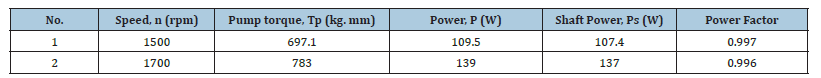 In order to obtained Ps, by determined the torque, or turning moment, for a pump and may be estimated from the power curve as in Eq. 3 [13].