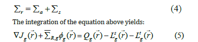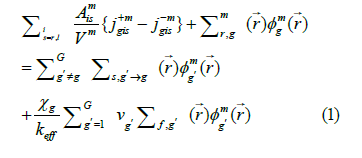 where Σmr,g is the neutron macroscopic removal cross section (absorption and out scatters plus, if considered, the leakage through the non-modeled dimensions) for each group, Q is source term for group g, Lsg and Ltg are leakage terms.