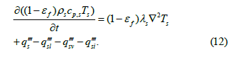 where g is gravity vector and F is body forces comes from porous matrix. Convection heat transfer is energy transport due to bulk fluid motion. Convection heat transfer through gases and liquids from a solid boundary result from the fluid motion along the surface. Since Energy transport in fluid: